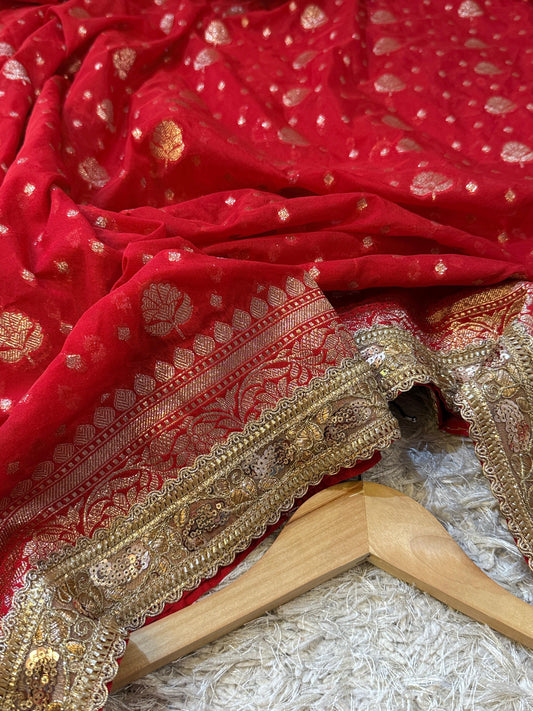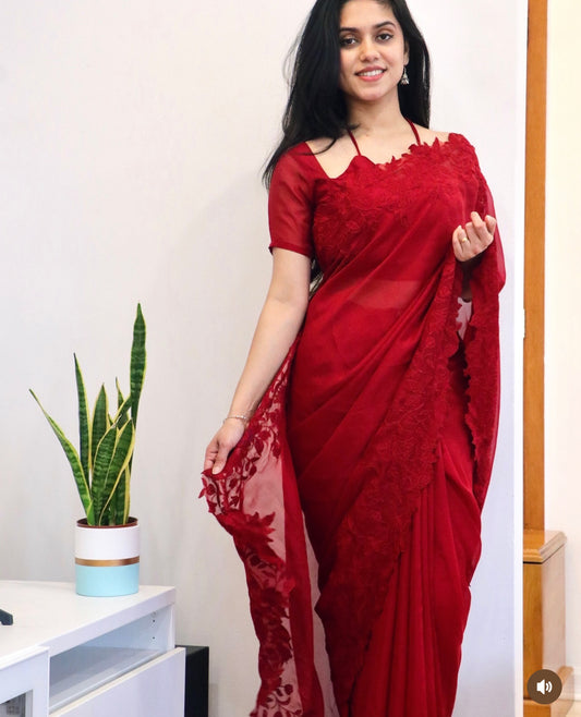 Meredith Handwork Saree(Red)