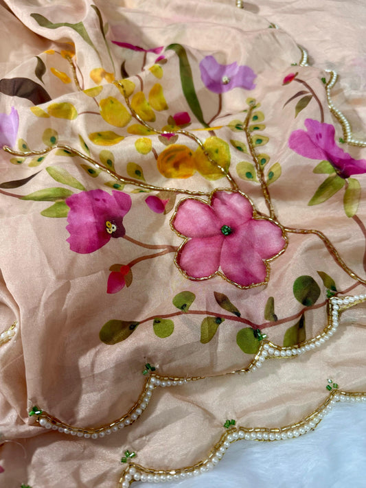 Meredith Handwork Saree(Beige)