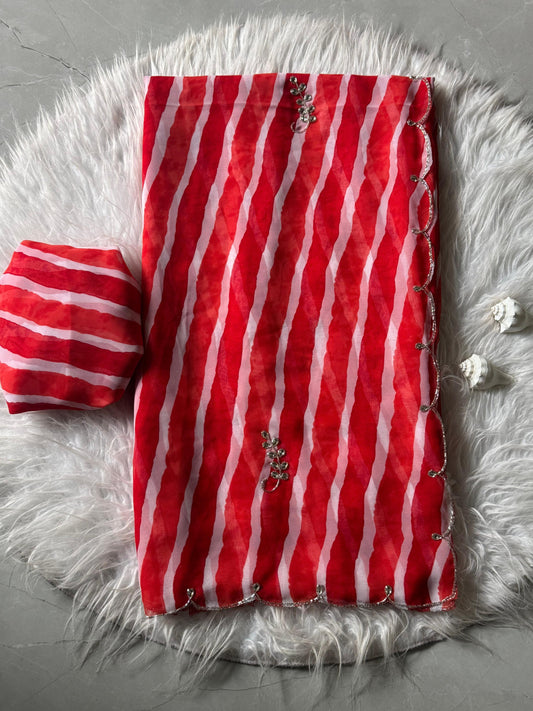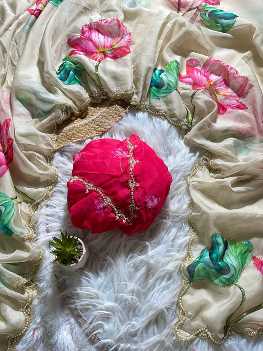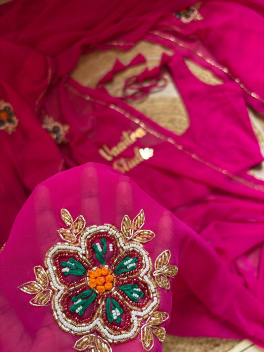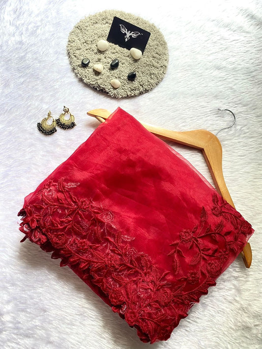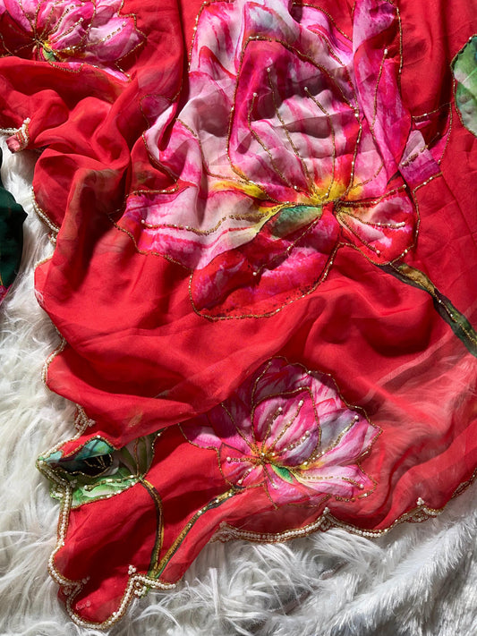 Flora Handwork Saree(Red)