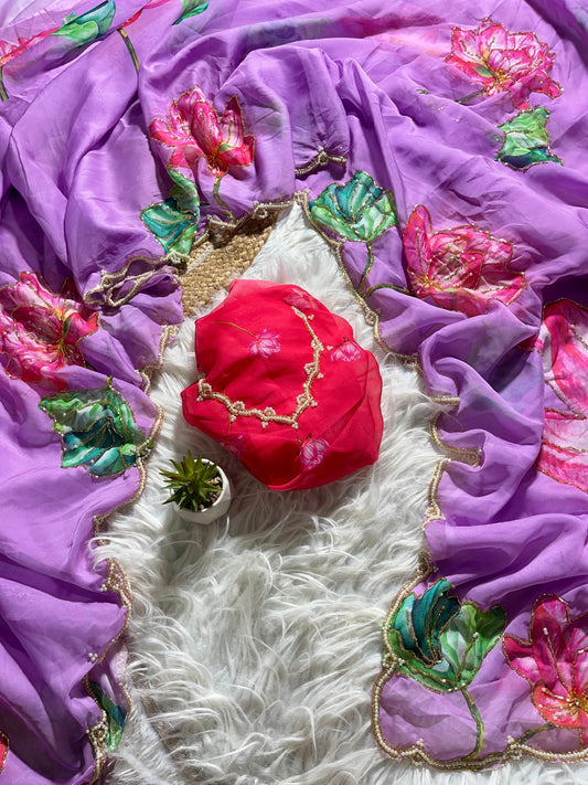 Meredith Handwork Saree(Purple)