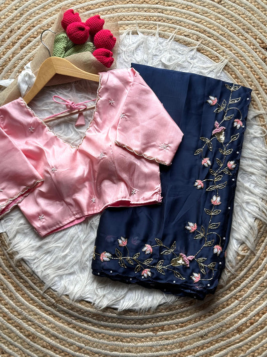 Meredith Handwork Saree(Blue)