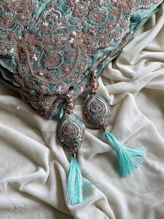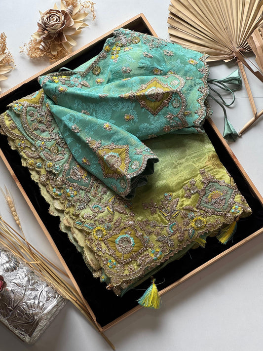 Meredith Handwork Saree(Sea Green)